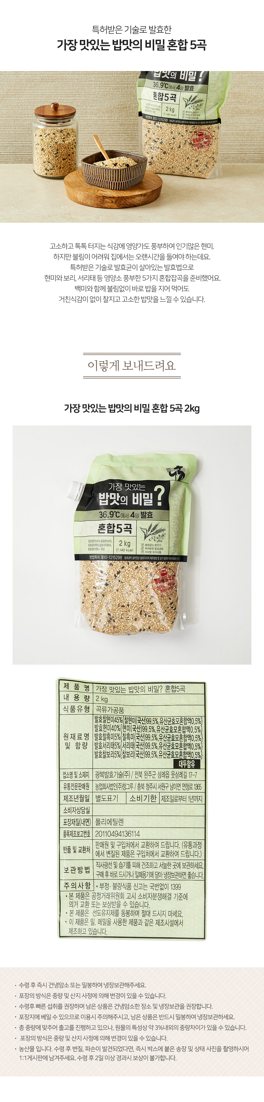 가장 맛있는 밥맛의 비밀 4일 발효 혼합5곡 2kg