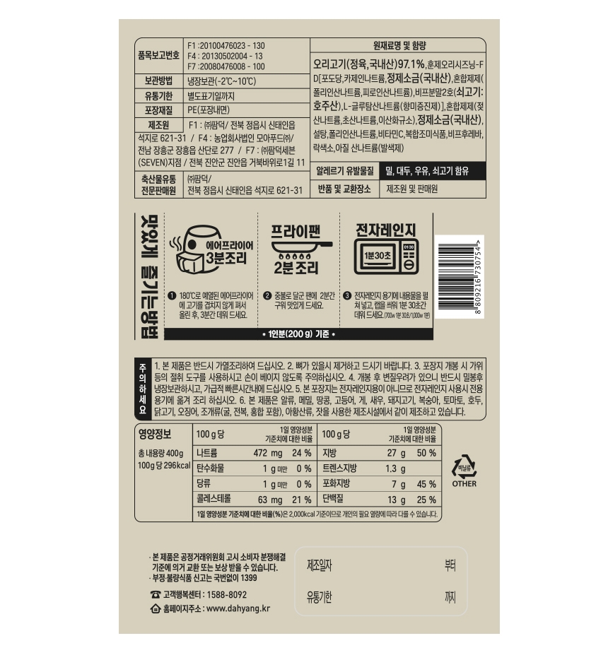 촉촉한 육즙과 쫄깃한 껍질| 판매가격 | 34,500원 |