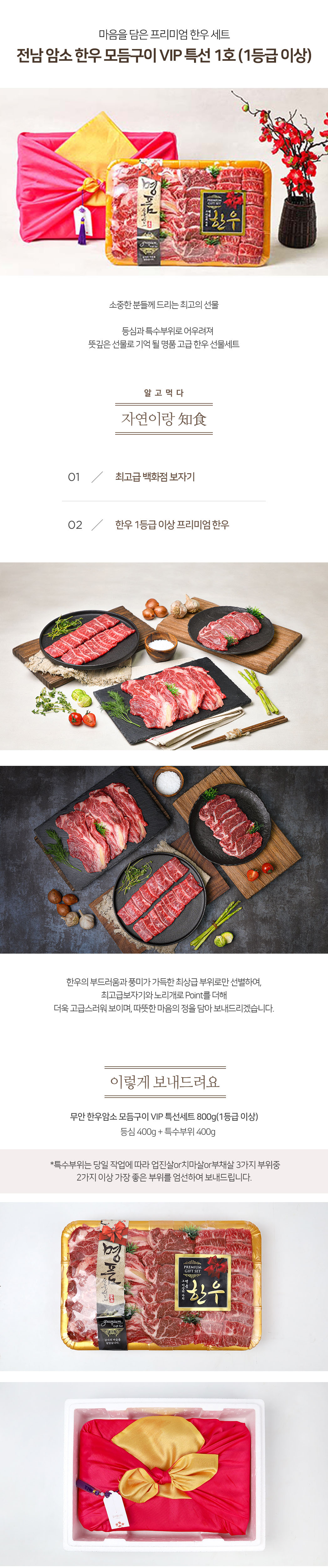 전남 무안 한우암소 모듬구이 VIP 특선세트 1호(최고급 백화점 보자기포장)