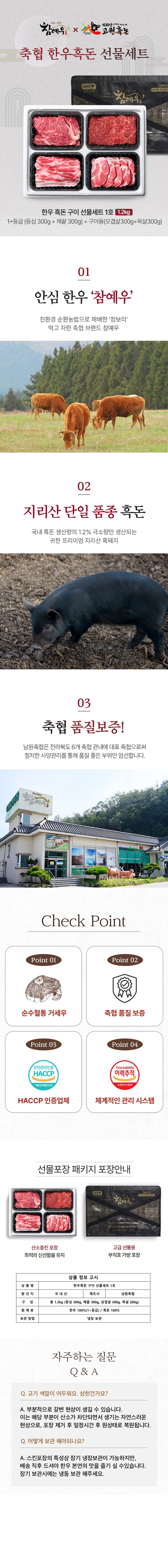 남원 1+ 한우구이용 2종과 흑돈육 구이용 2종 구성세트| 판매가격 | 143,000원 170,000원 |