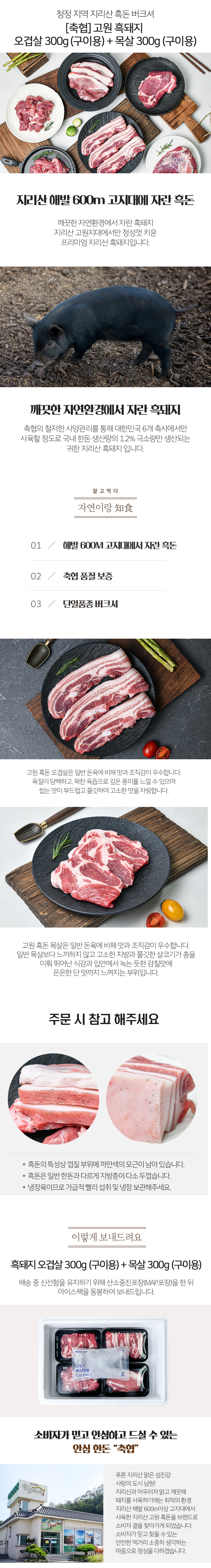 [특가][축협] 고원 흑돼지 오겹살 300g(구이용)+목살 300g(구이용)