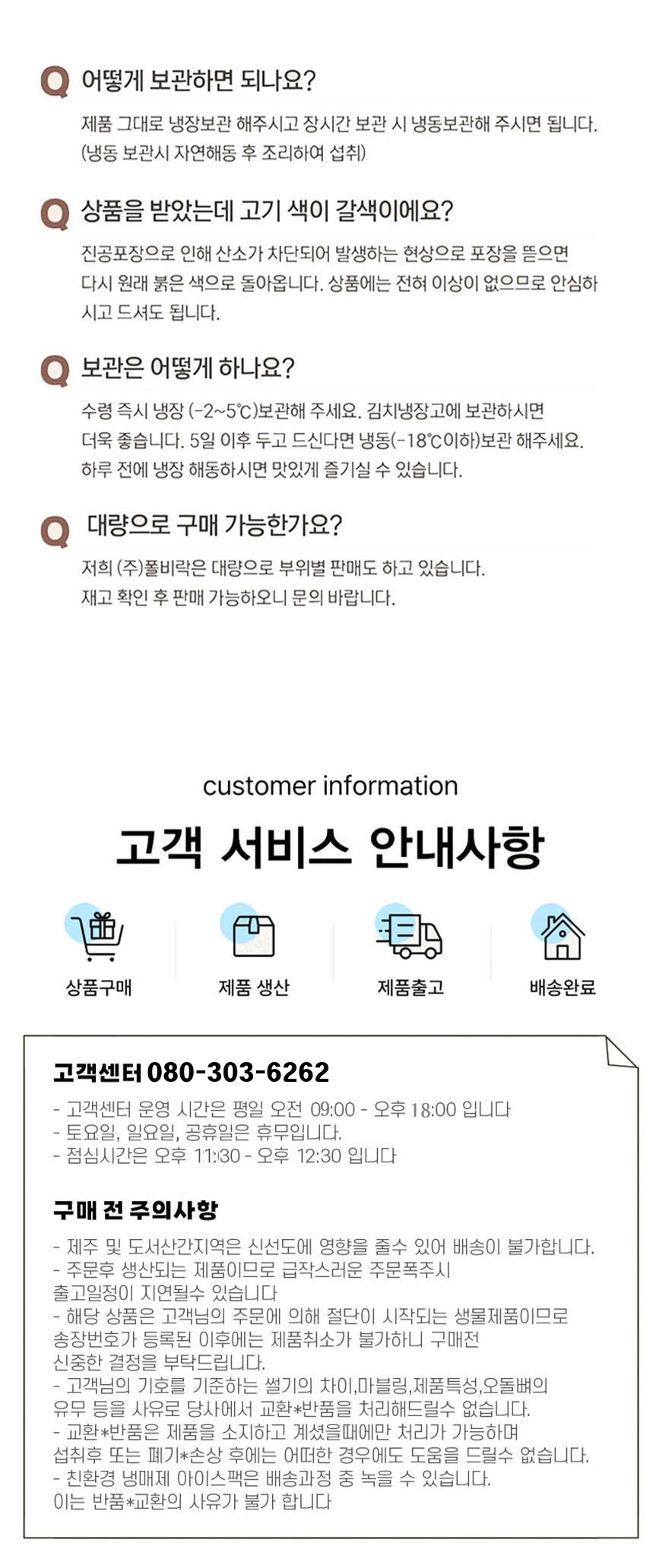 · 주의사항 - 일요일, 법정공휴일은 배송(도착)하지 않습니다. (명절 및 특수시즌 제외) - 배송지 정보와 받으시는 분의 장소 및 연락처가 불분명할 경우에는 배송이 지연될 수 있으며, 그로 인한 상품 변질에 대해서는 자연이랑이 책임지지 않습니다. |