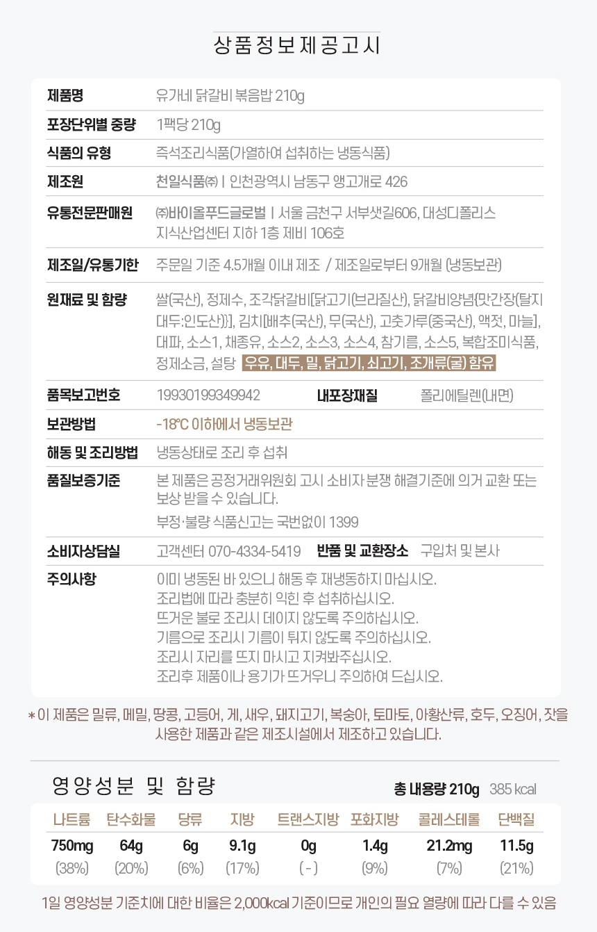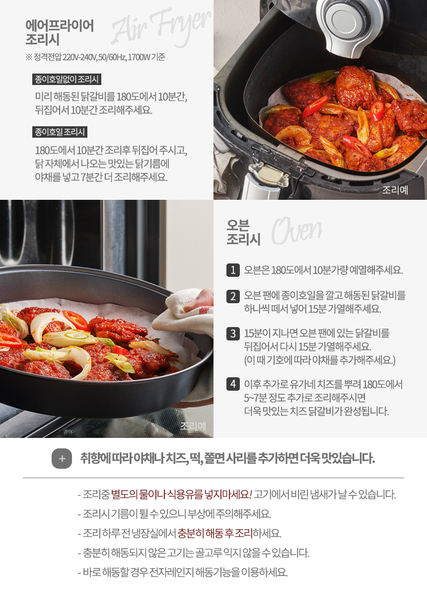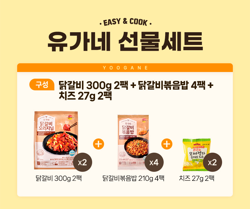 | 판매단위 | 닭갈비 300g*2+닭갈비볶음밥 210g*4+치즈27g*2 |