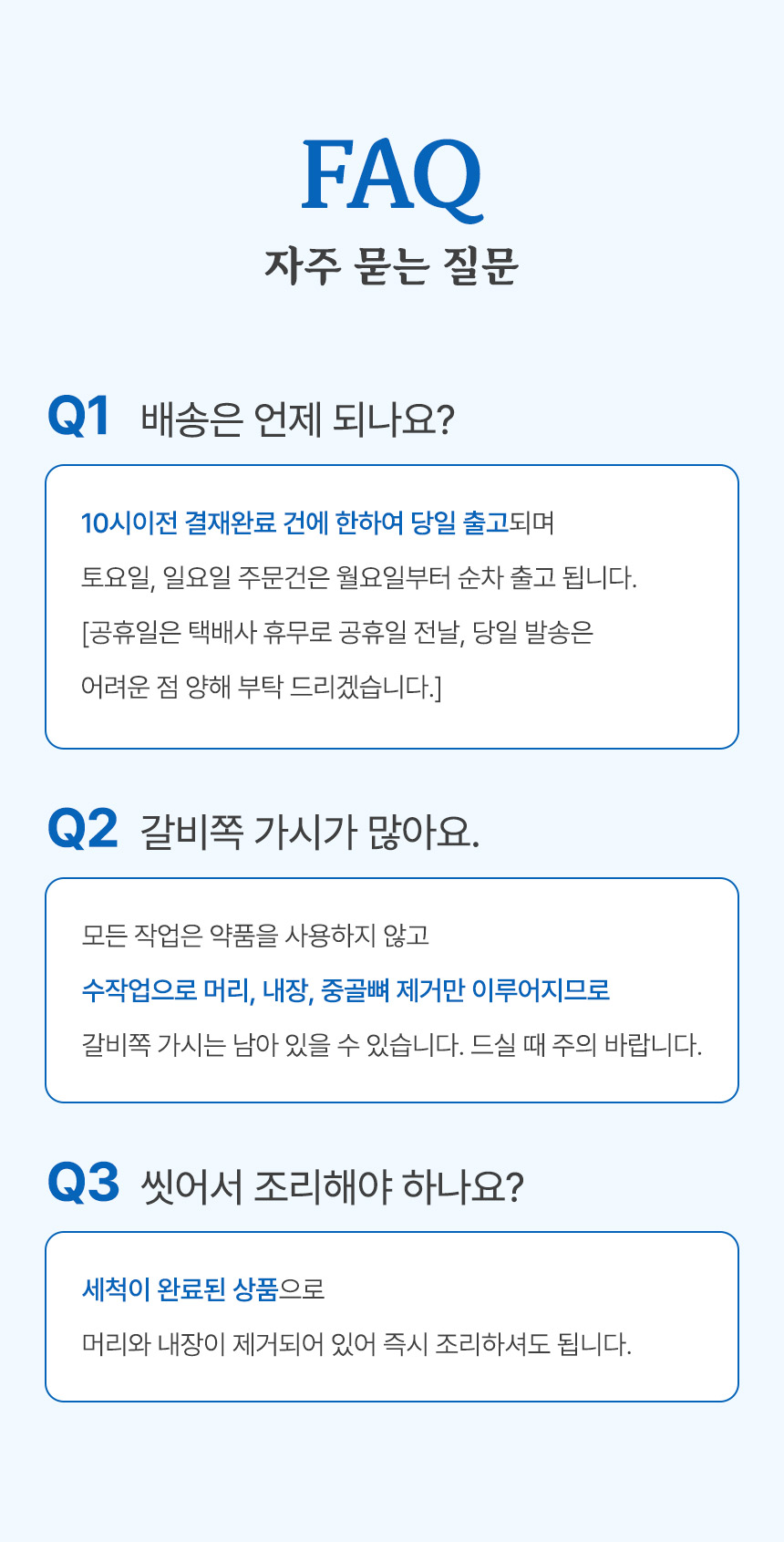 - 냉장/냉동 상품의 경우 출고 후 1-2 영업일 내 배송 예정이며, 상온 상품의 경우 택배사의 사정에 따라 출고 후 배송 시까지 1~3 영업일 소요될 수 있습니다.