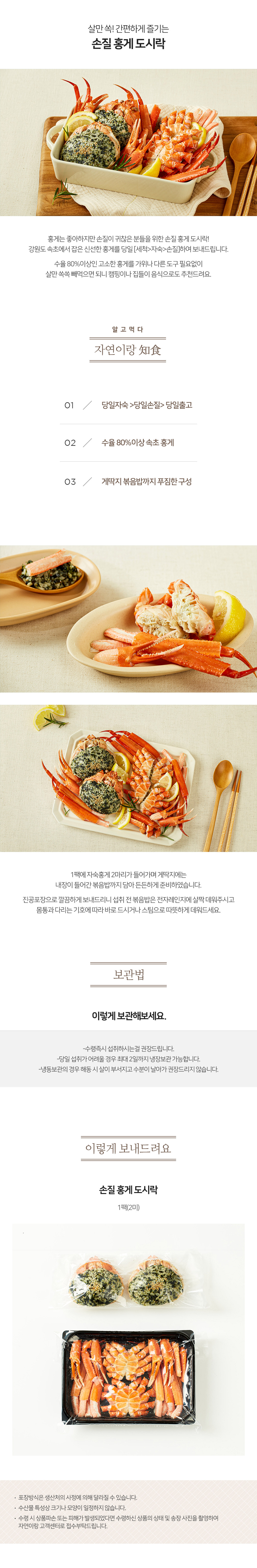 | 판매단위 | 1팩당(게딱지볶음밥 2개, 손질 자숙 홍게 2미) | |