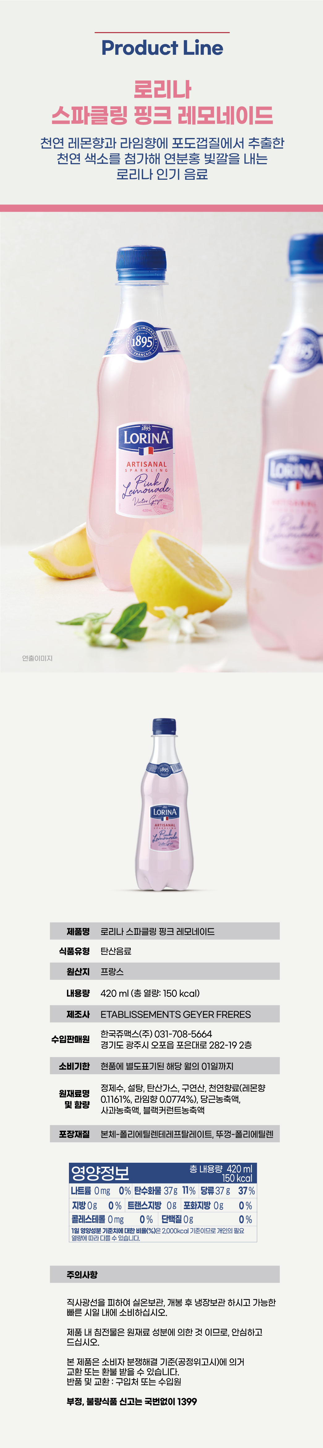 [로리나] 핑크 레모네이드 420ml