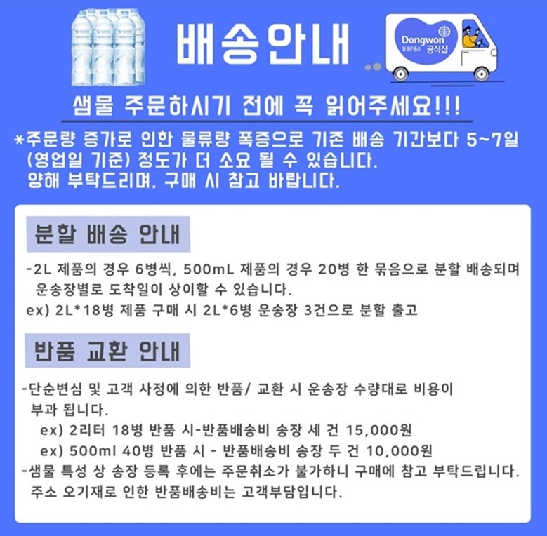 · 공휴일 전날은 출고 불가하며 당일 출고건은 다음날 배송됩니다.