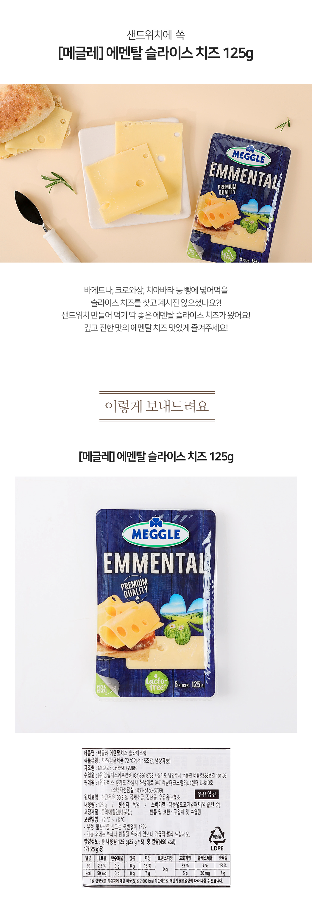 [메글레] 에멘탈 슬라이스 치즈 125g