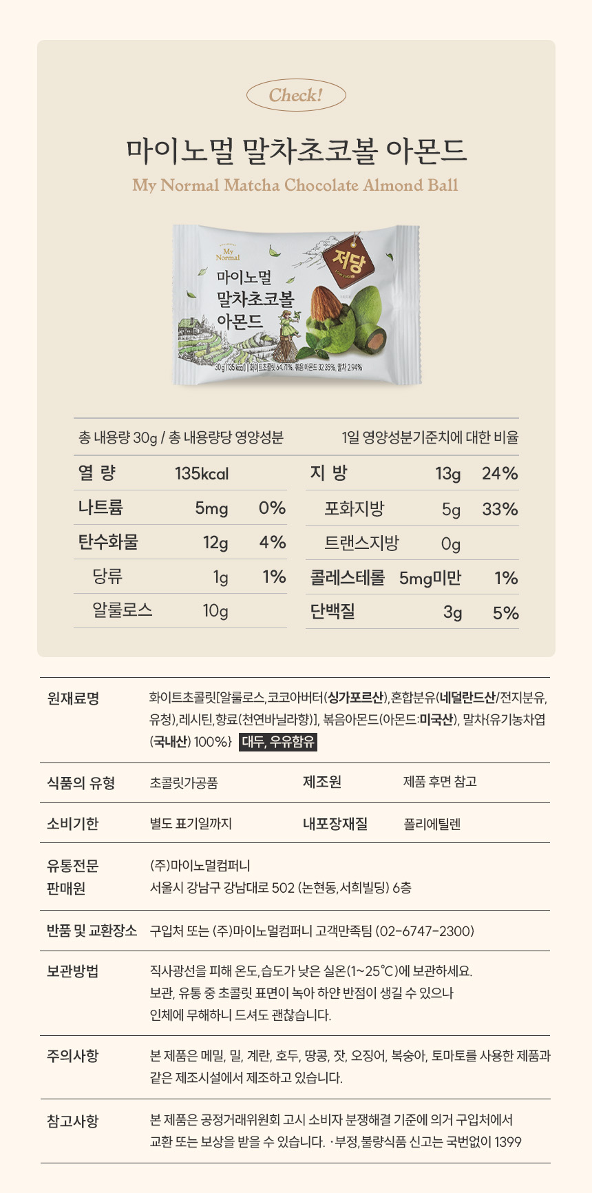 [마이노멀] 저당 초코볼 말차아몬드 1box (5봉)
