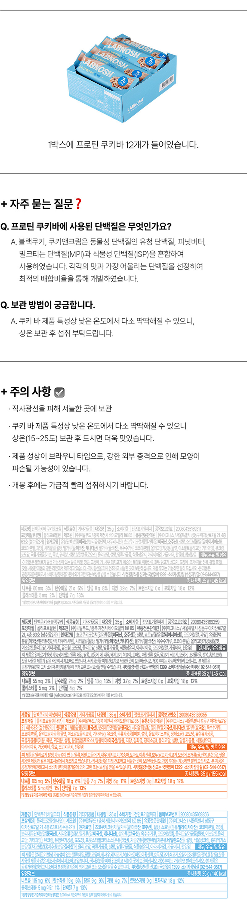 품목또는명칭 [랩노쉬] 프로틴 쿠키바 블랙 12개입