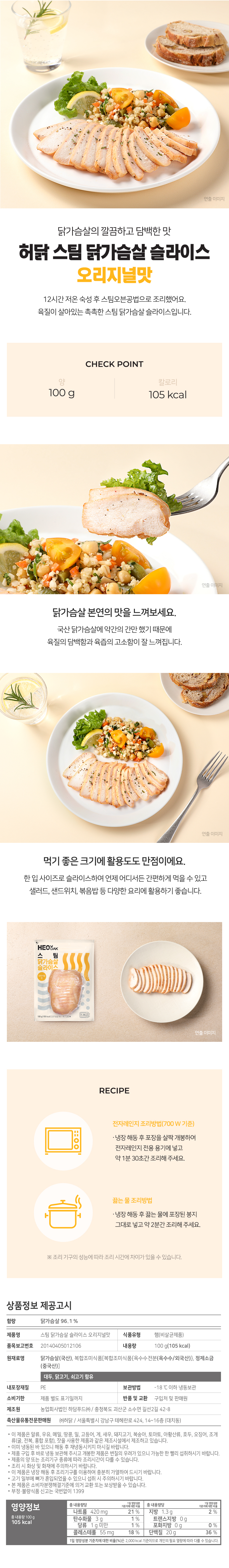 [허닭] 스팀 닭가슴살 슬라이스 오리지널 100g