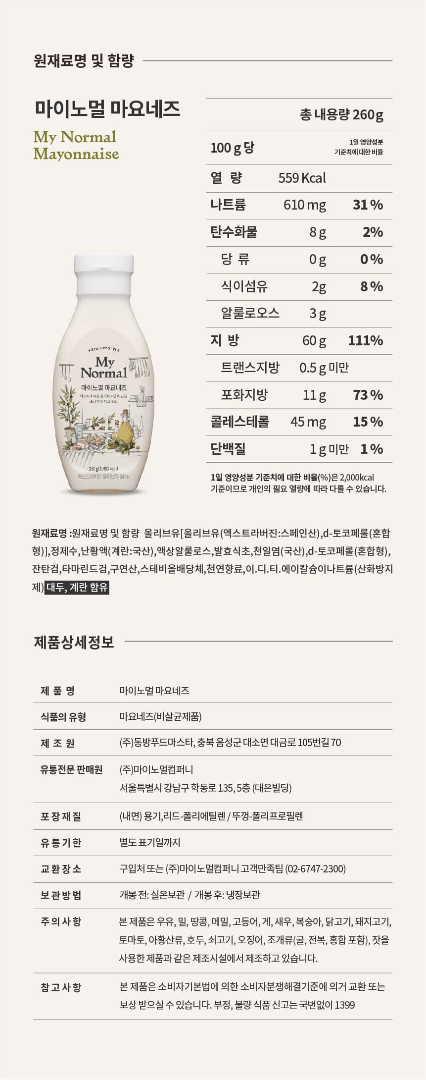 [마이노멀] 엑스트라버진 올리브유 마요네즈 260g