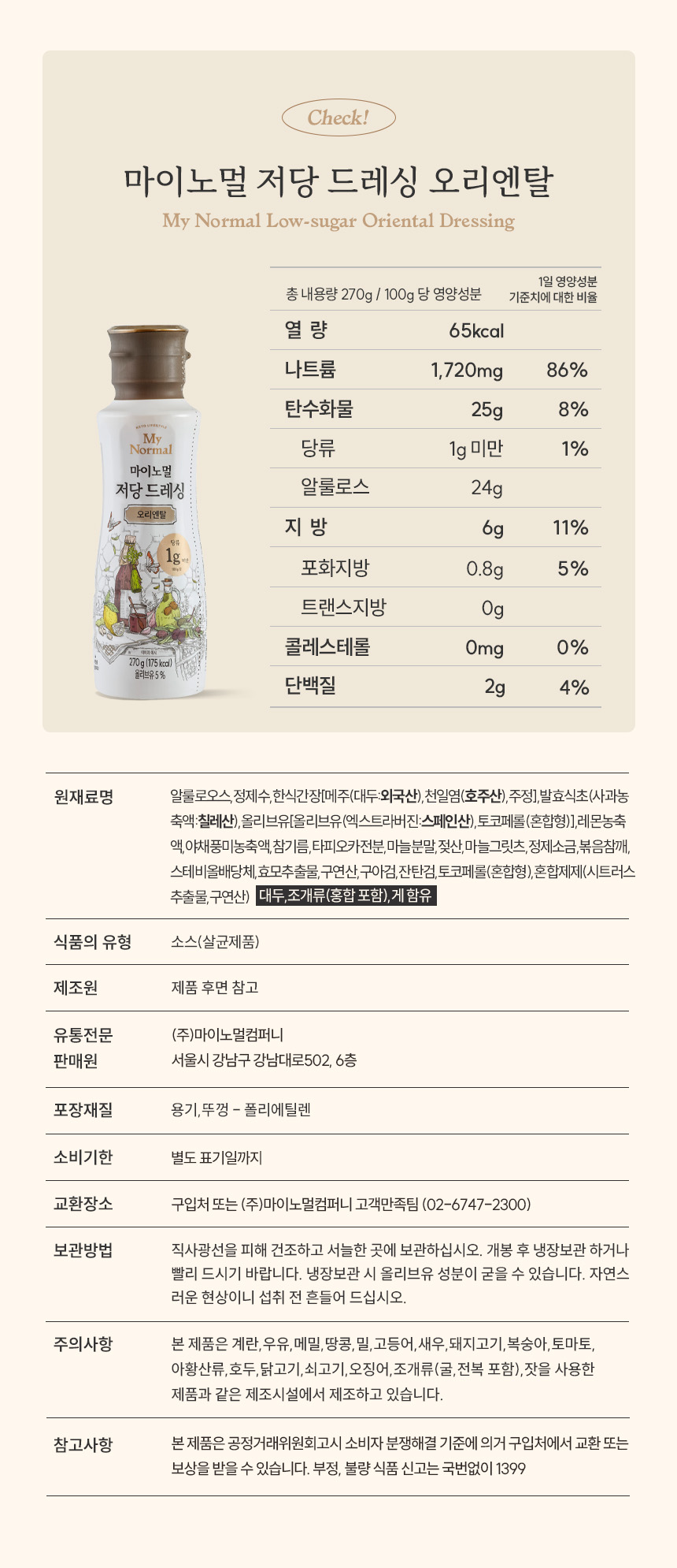 [마이노멀] 저당드레싱 오리엔탈 270g
