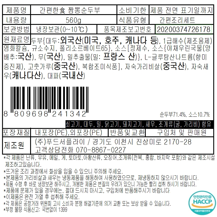 간편한食 짬뽕순두부찌개