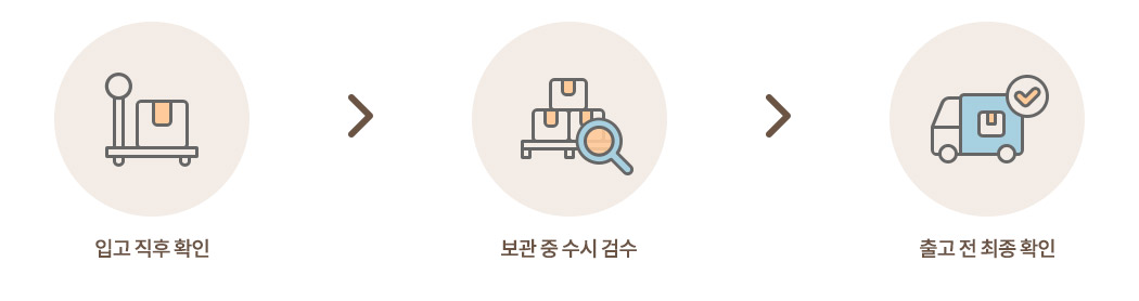 자연이랑이 직접 매입하여 발송하는 신선식품은 입고 직후 → 보관 단계 → 출고 직전까지 수시로 철저하게 육안 검사가 이루어집니다.